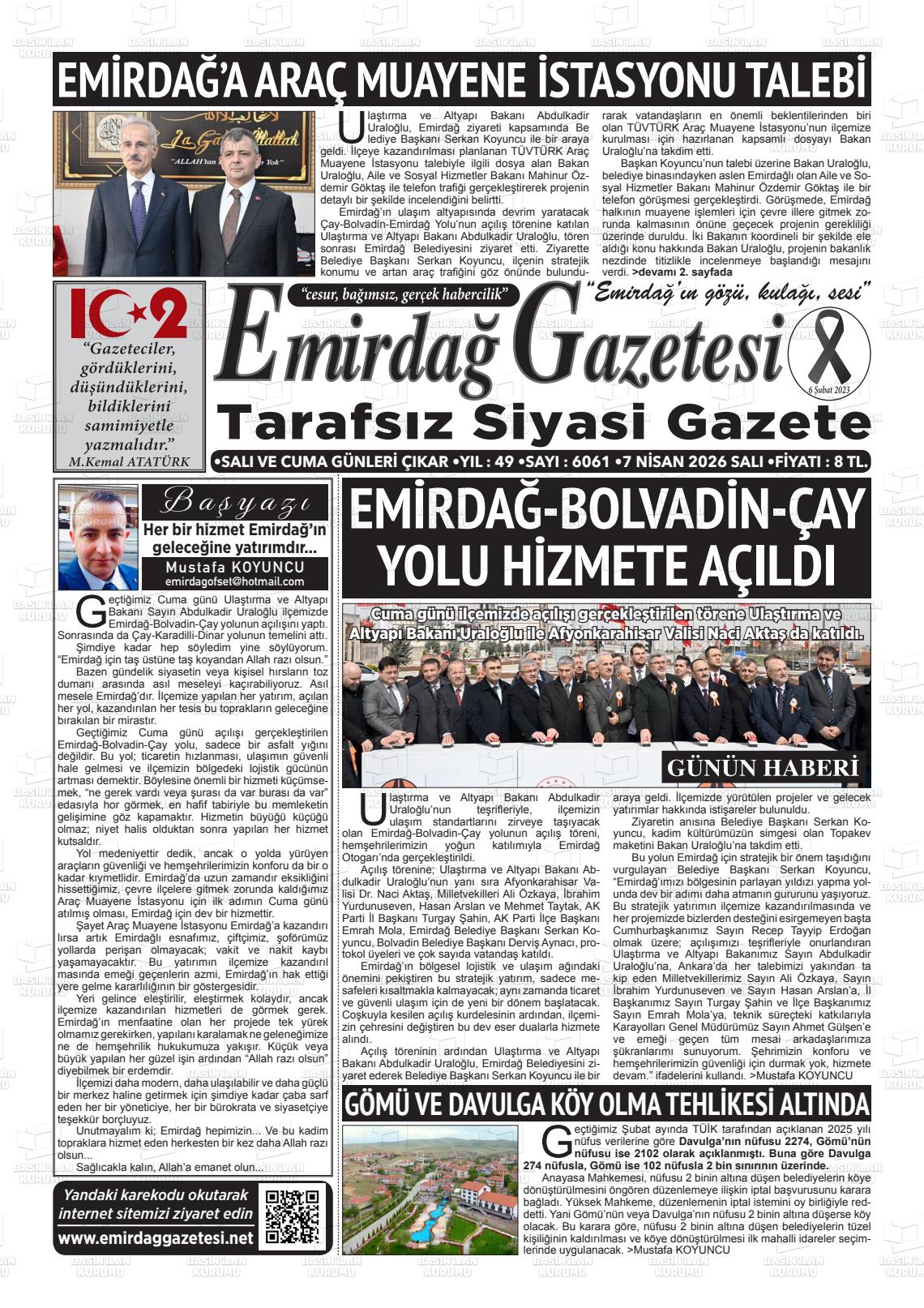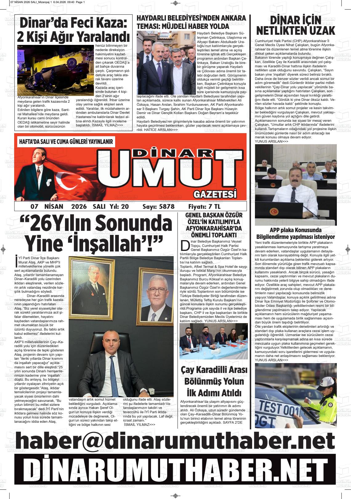 07 Nisan 2026, Salı Günü Manşeti
