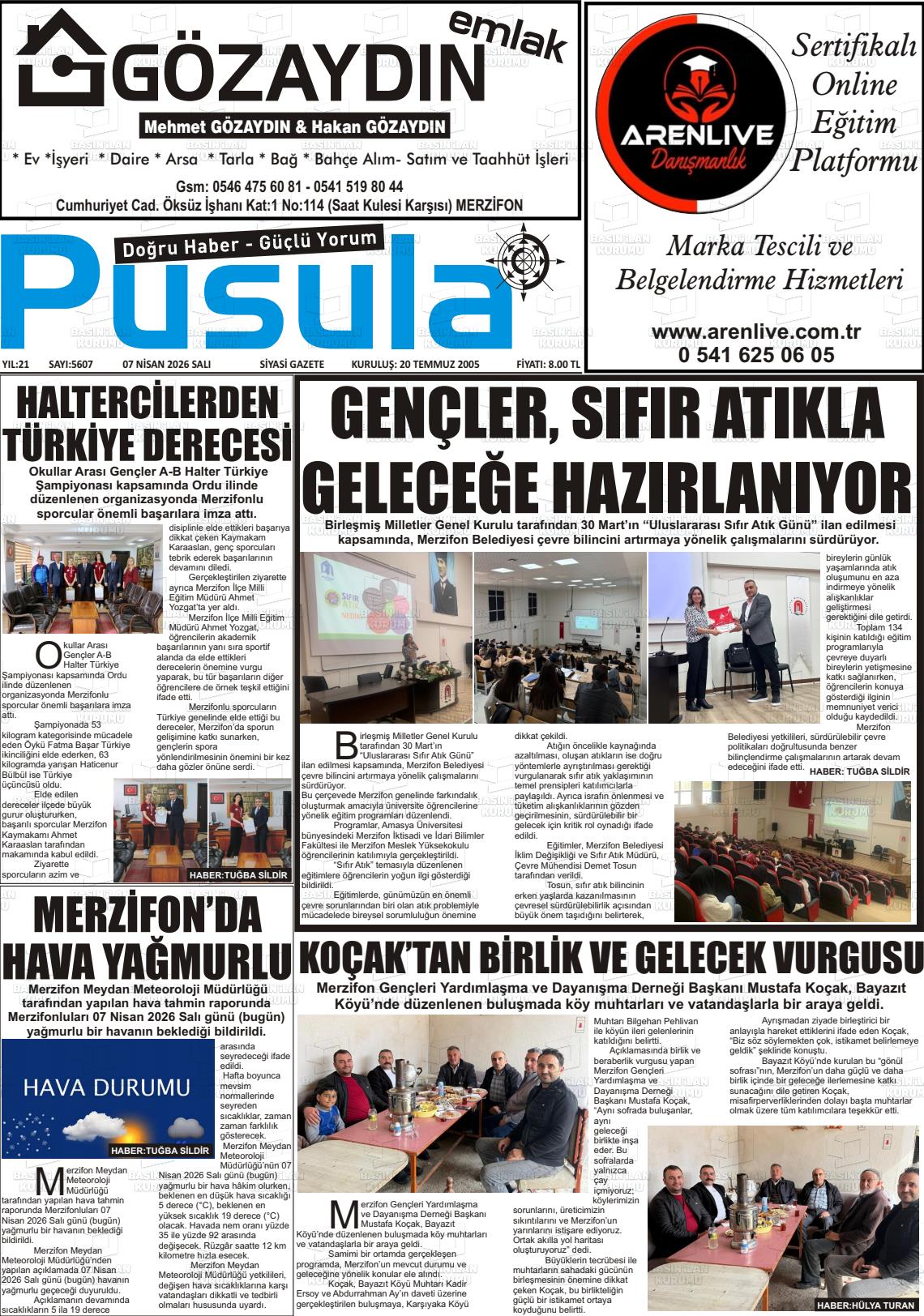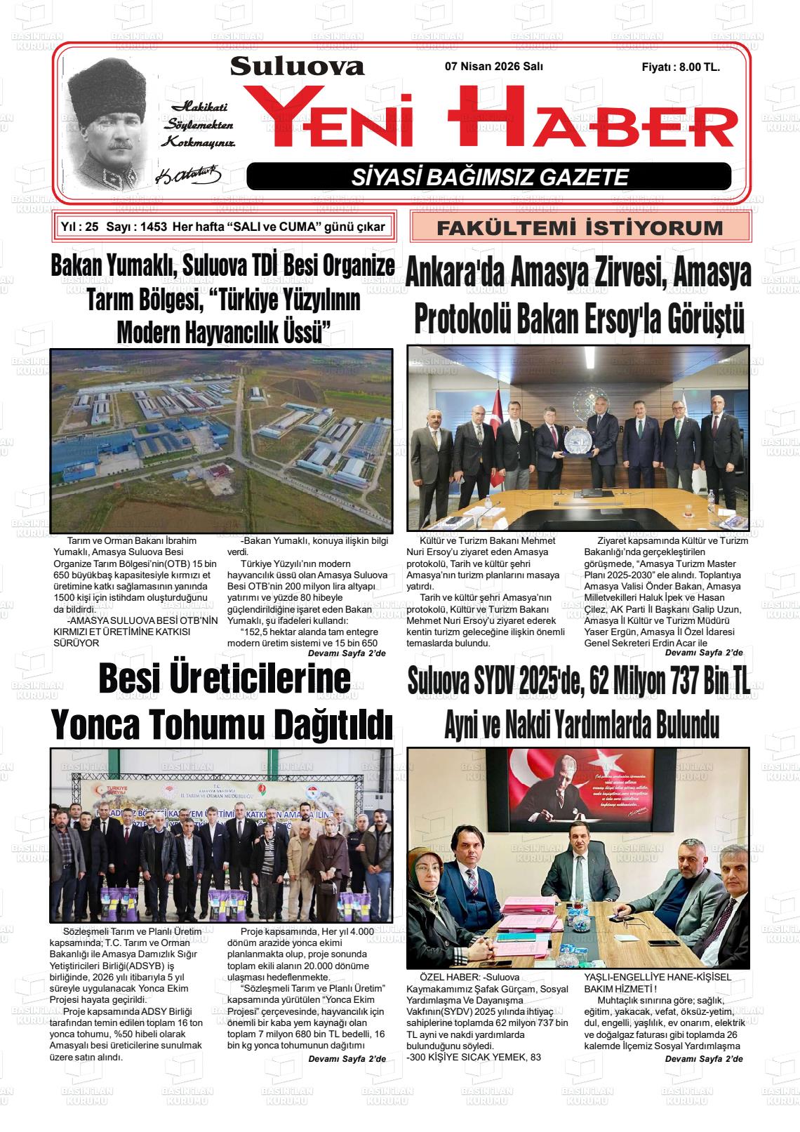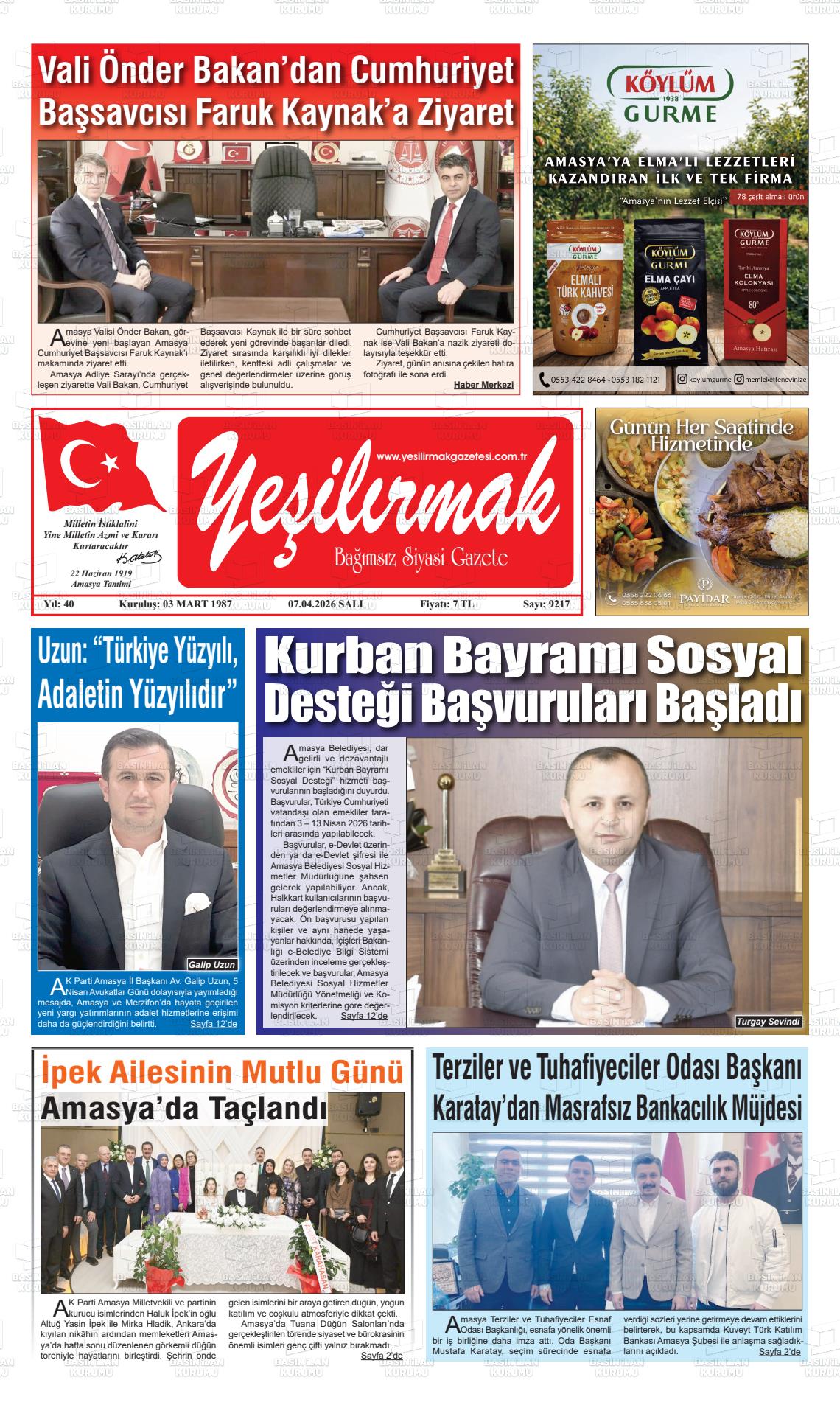 Amasya Yerel Gazeteleri 07 Nisan 2026, Salı Günü Manşeti