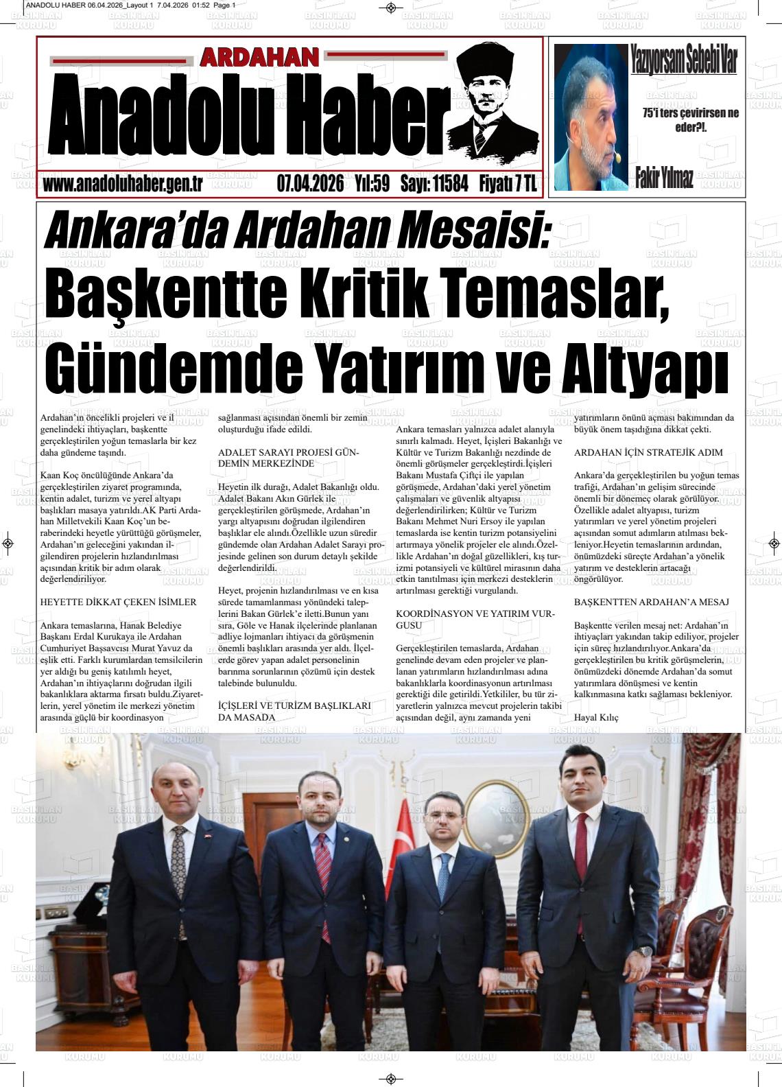 07 Nisan 2026, Salı Günü Manşeti