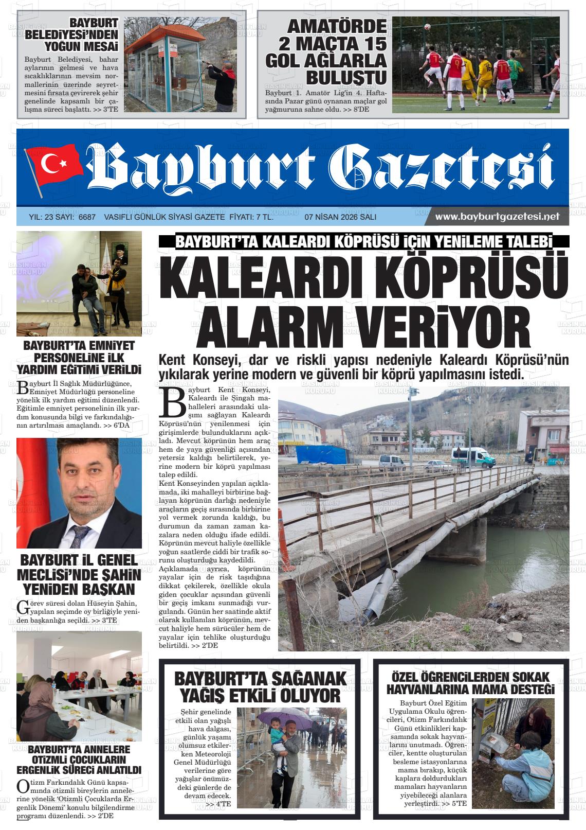 Bayburt Yerel Gazeteleri 07 Nisan 2026, Salı Günü Manşeti