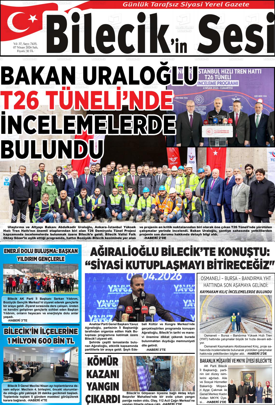 07 Nisan 2026, Salı Günü Manşeti