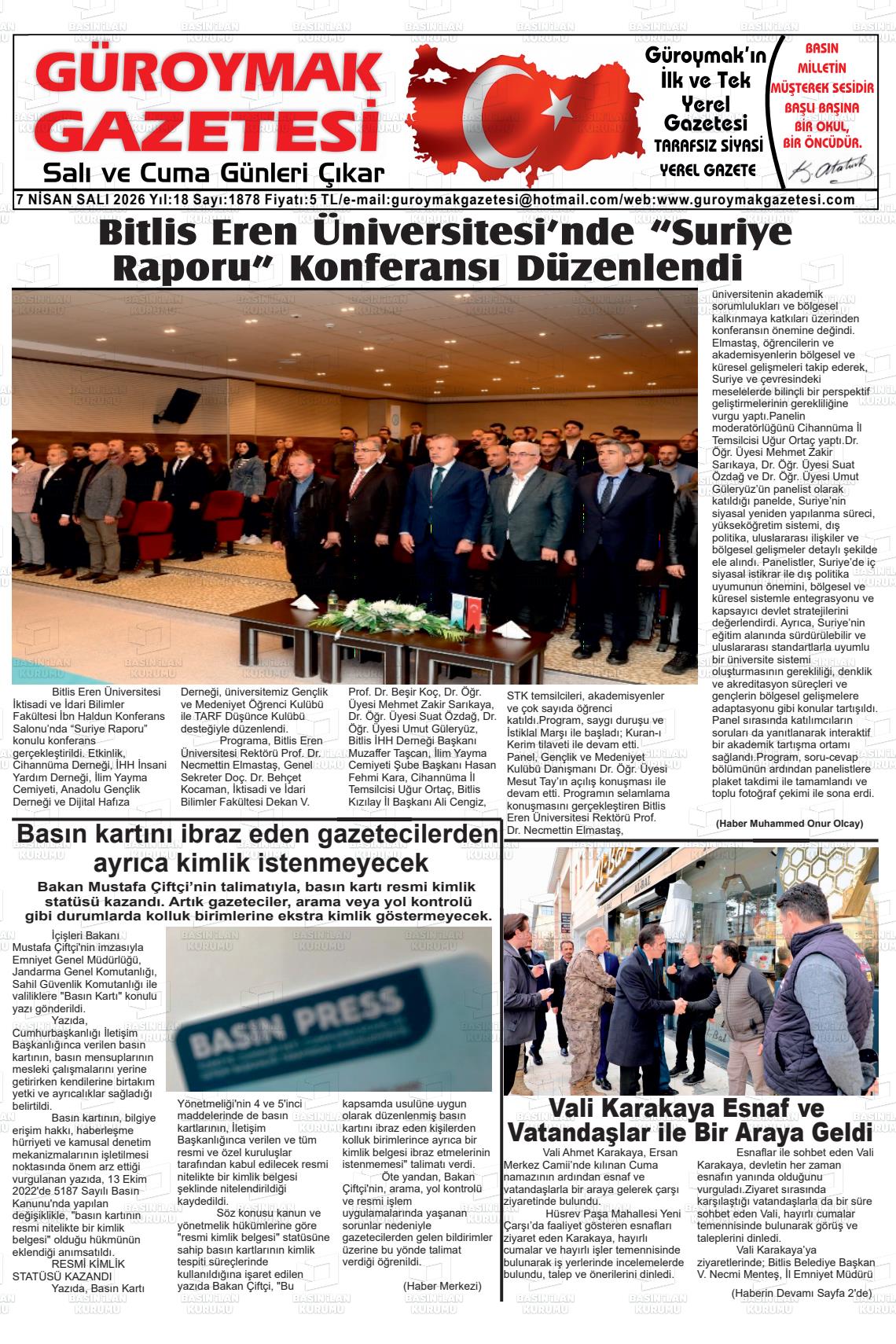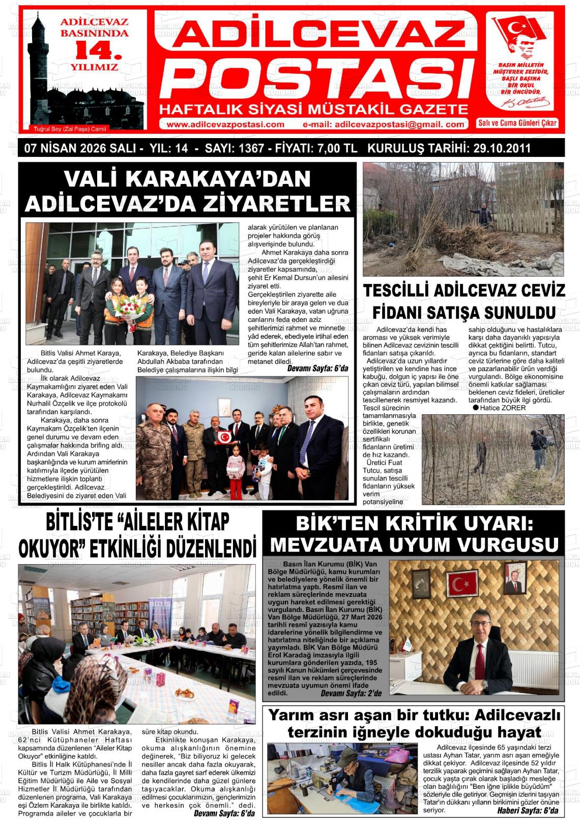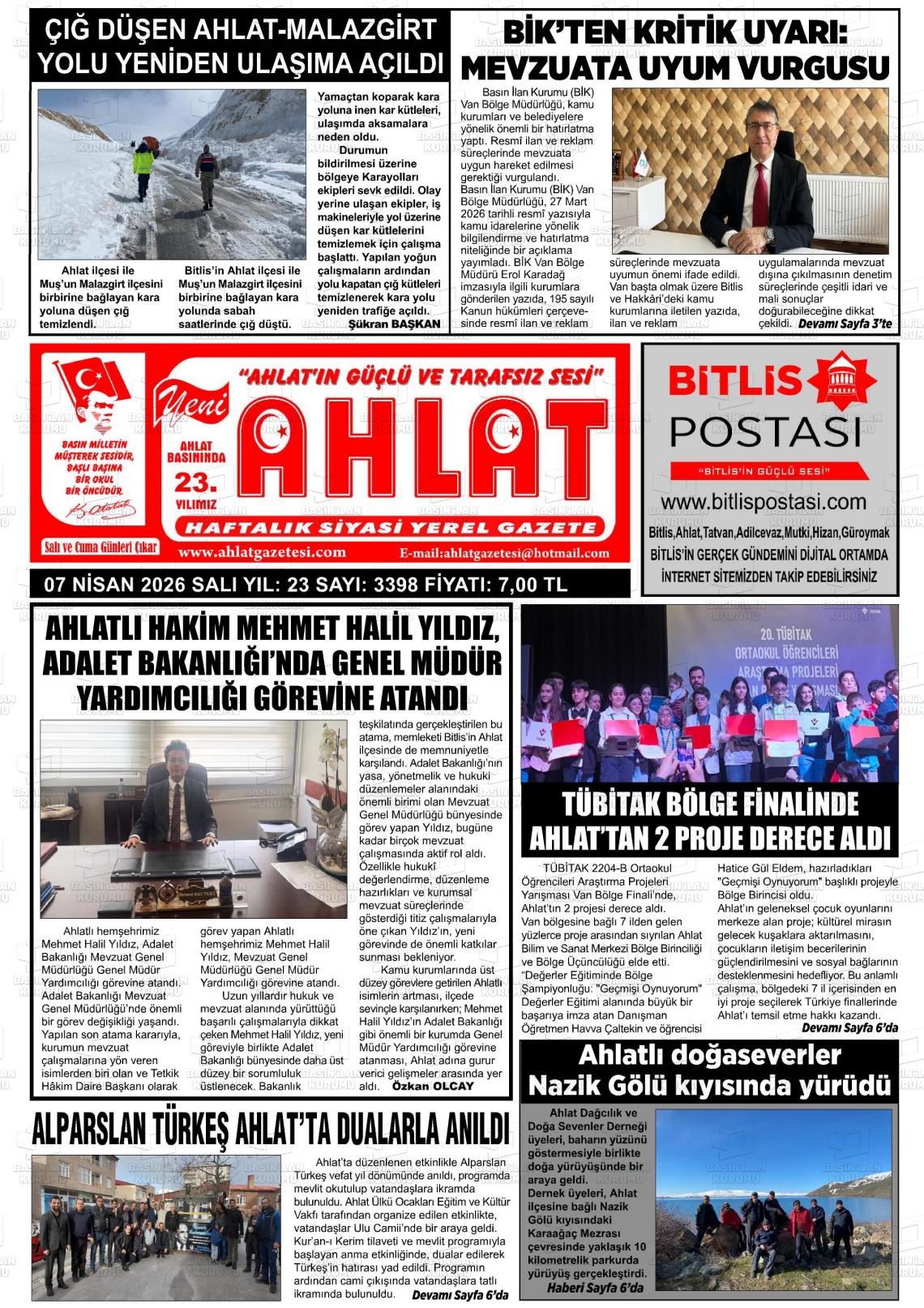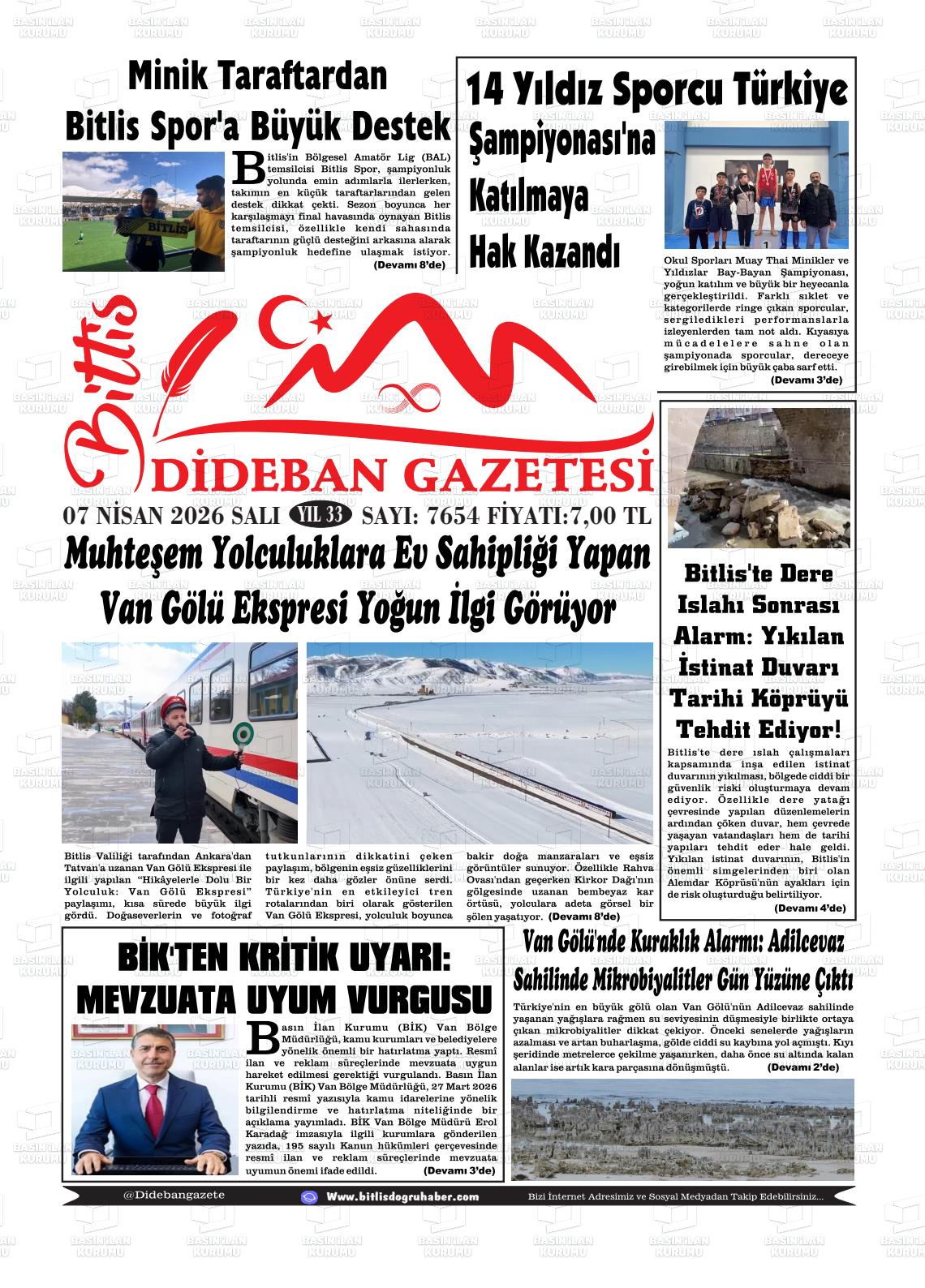 Bİtlİs Yerel Gazeteleri 07 Nisan 2026, Salı Günü Manşeti