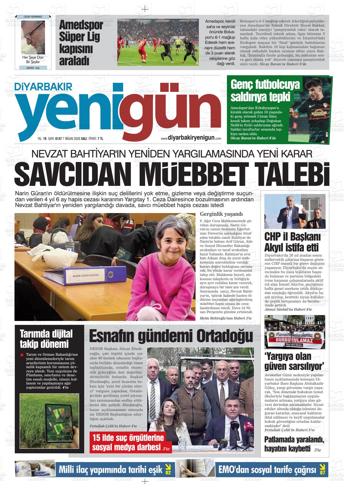 Dİyarbakır Yerel Gazeteleri 07 Nisan 2026, Salı Günü Manşeti