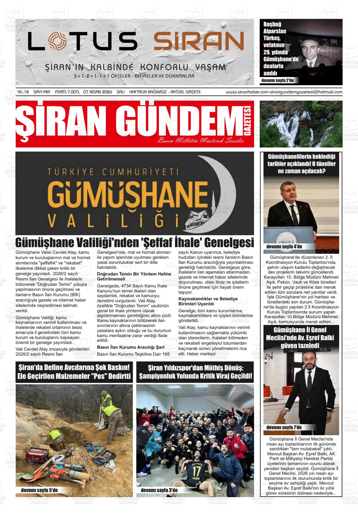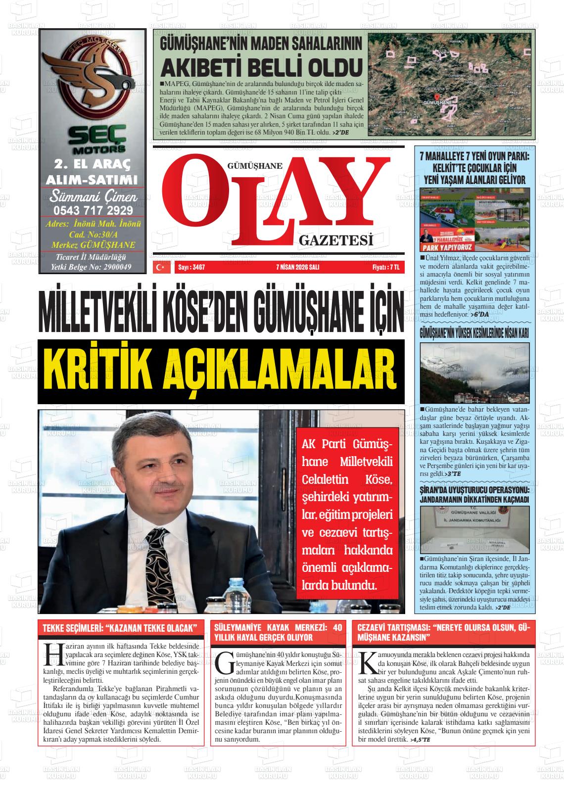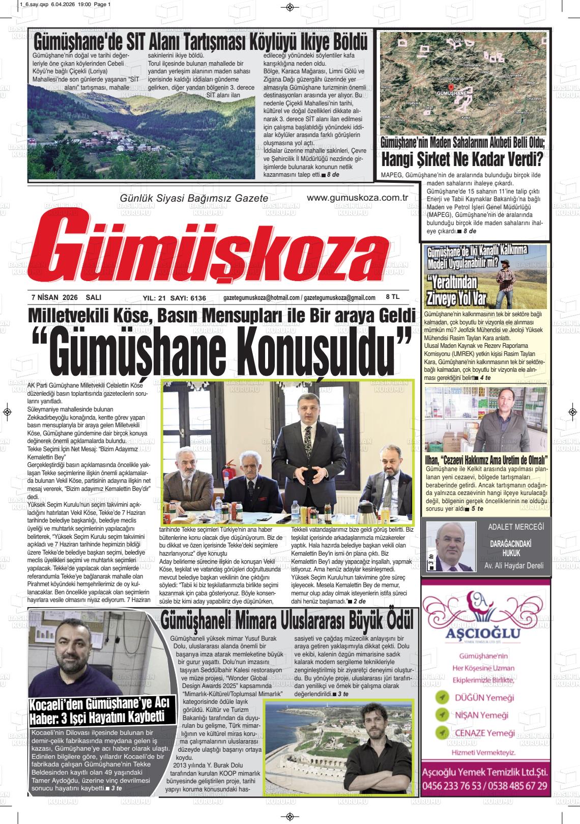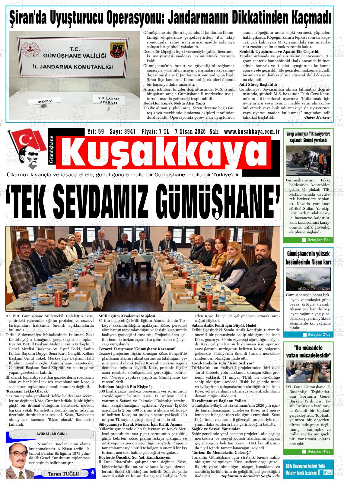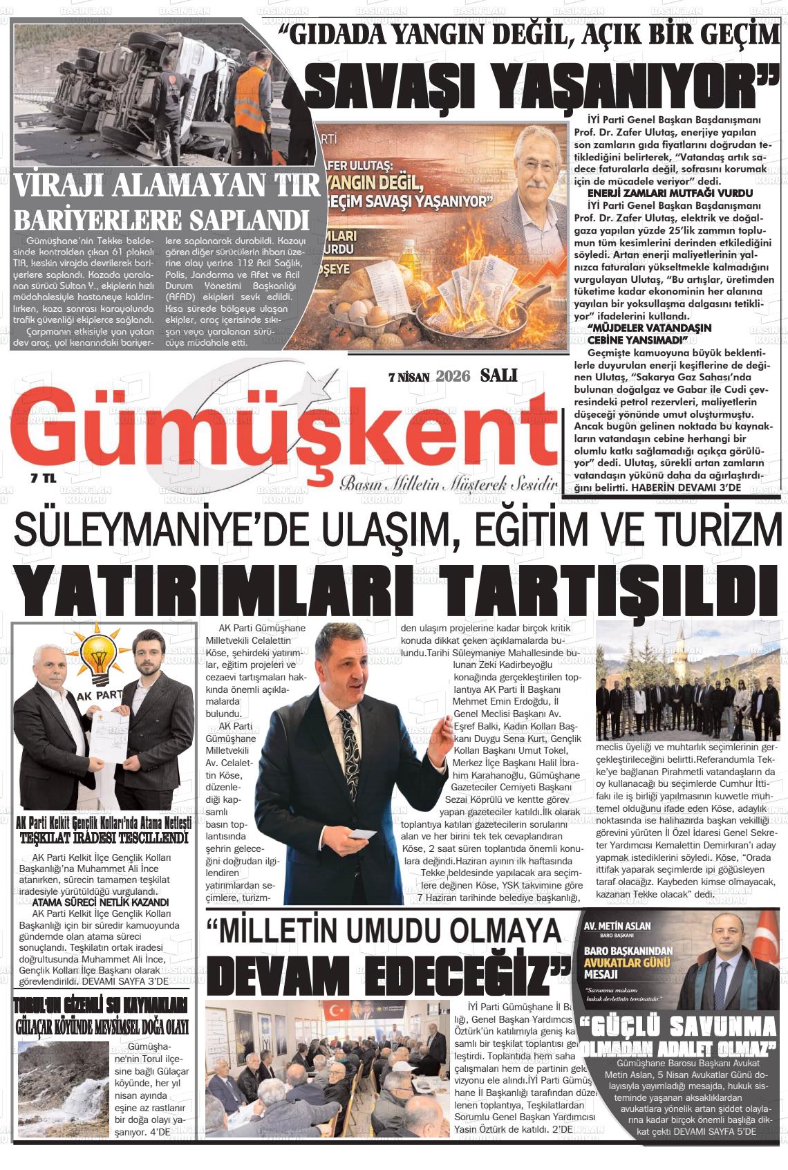 Gümüşhane Yerel Gazeteleri 07 Nisan 2026, Salı Günü Manşeti