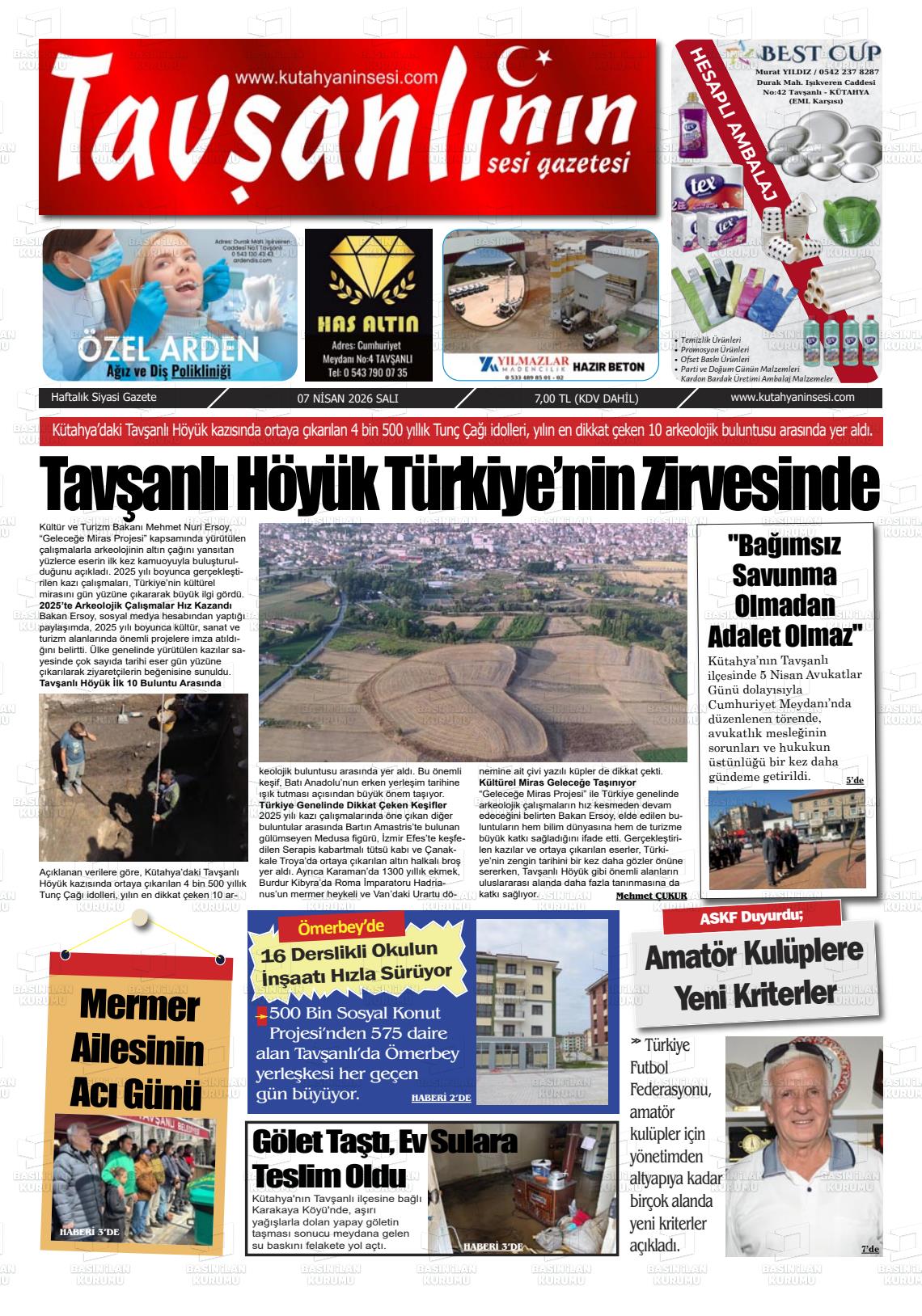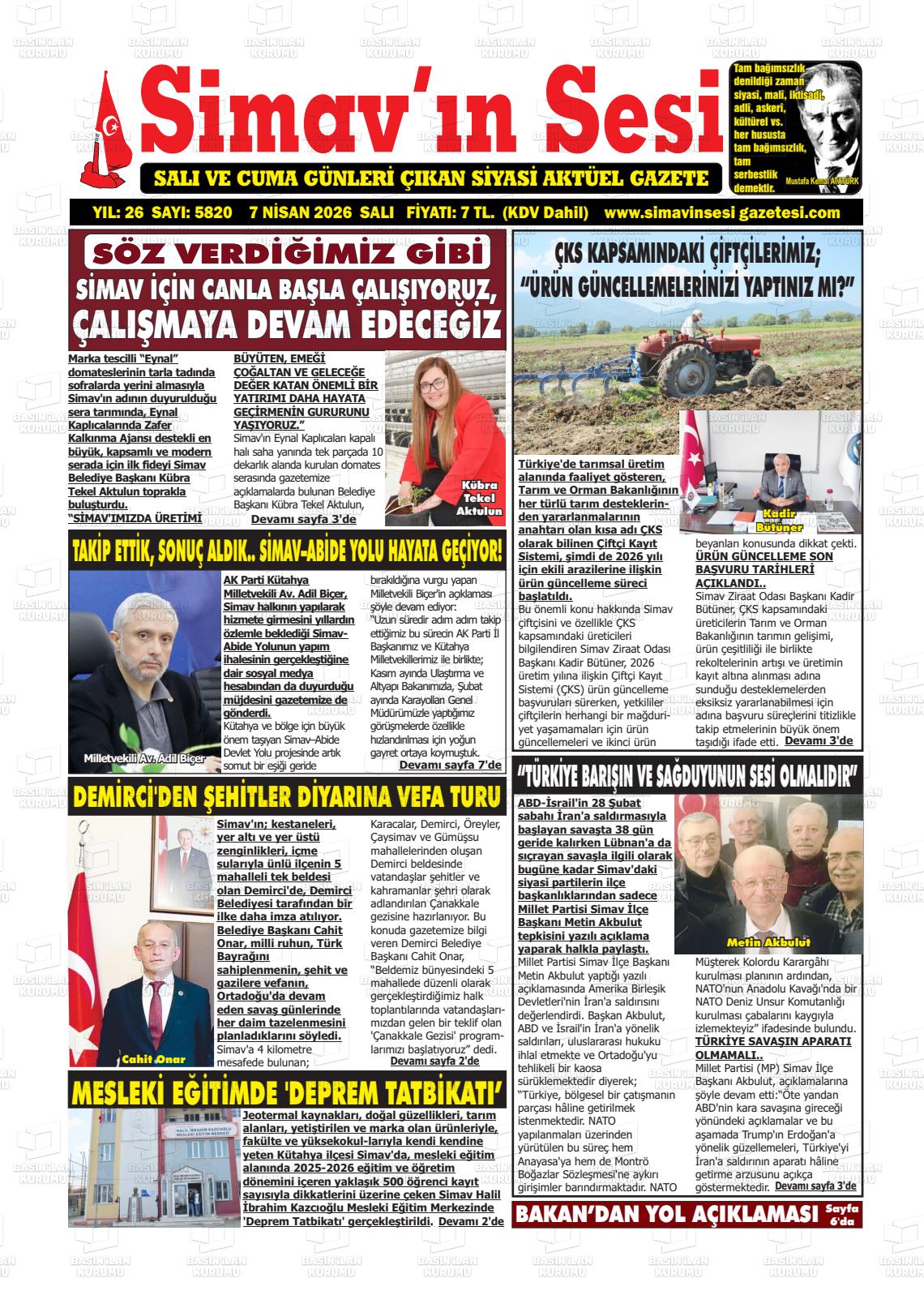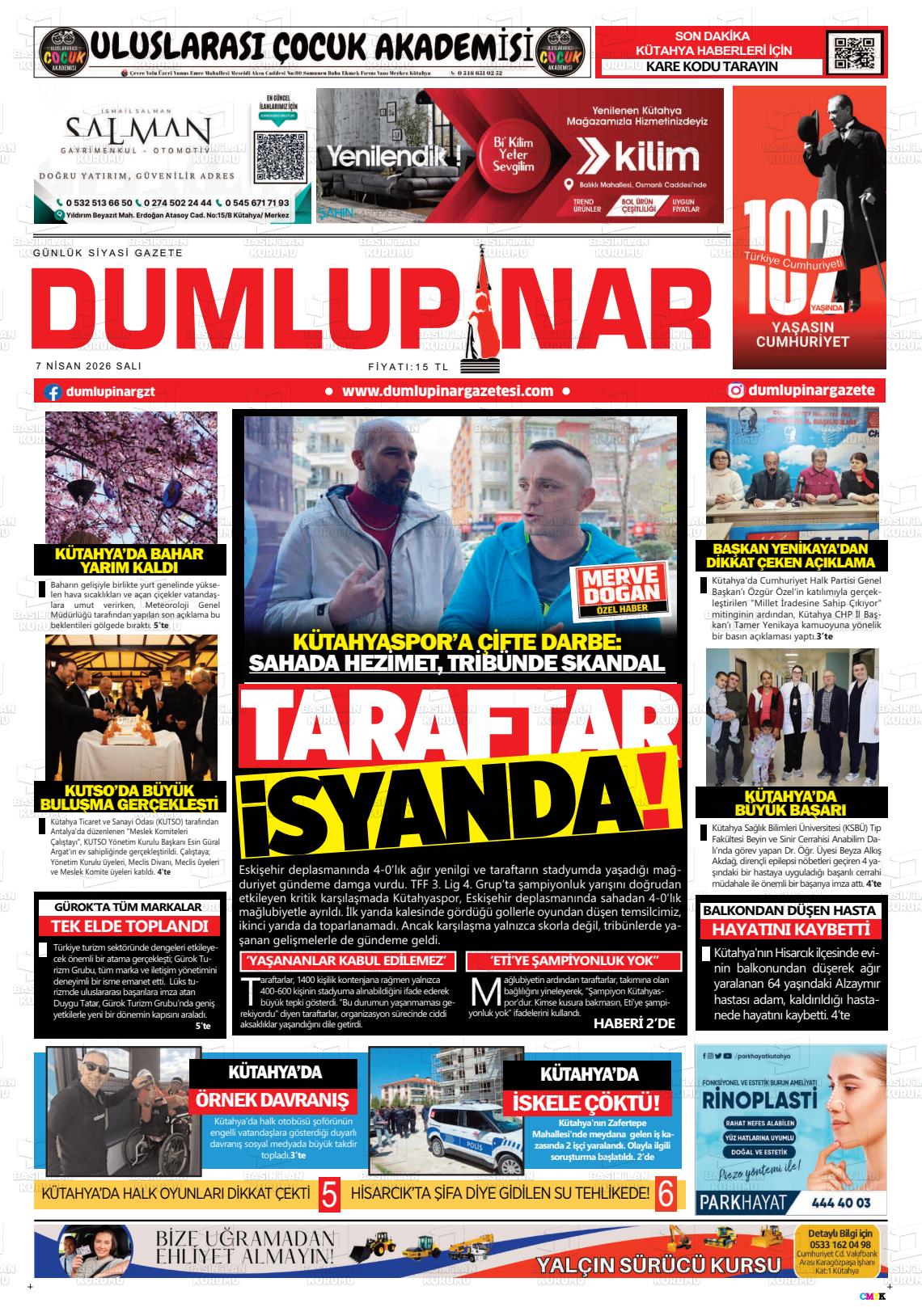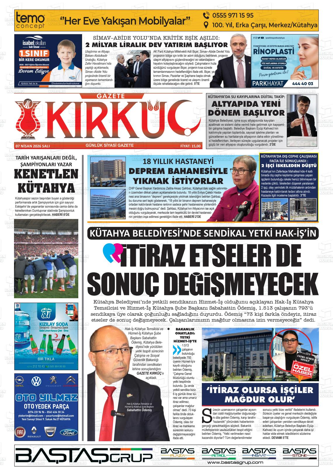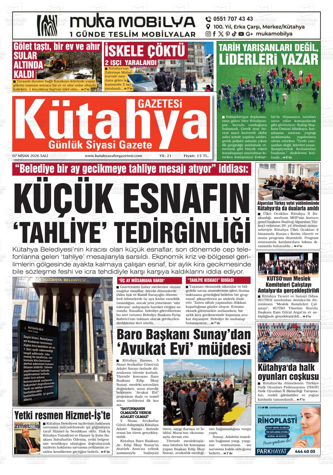 Kütahya Yerel Gazeteleri 07 Nisan 2026, Salı Günü Manşeti