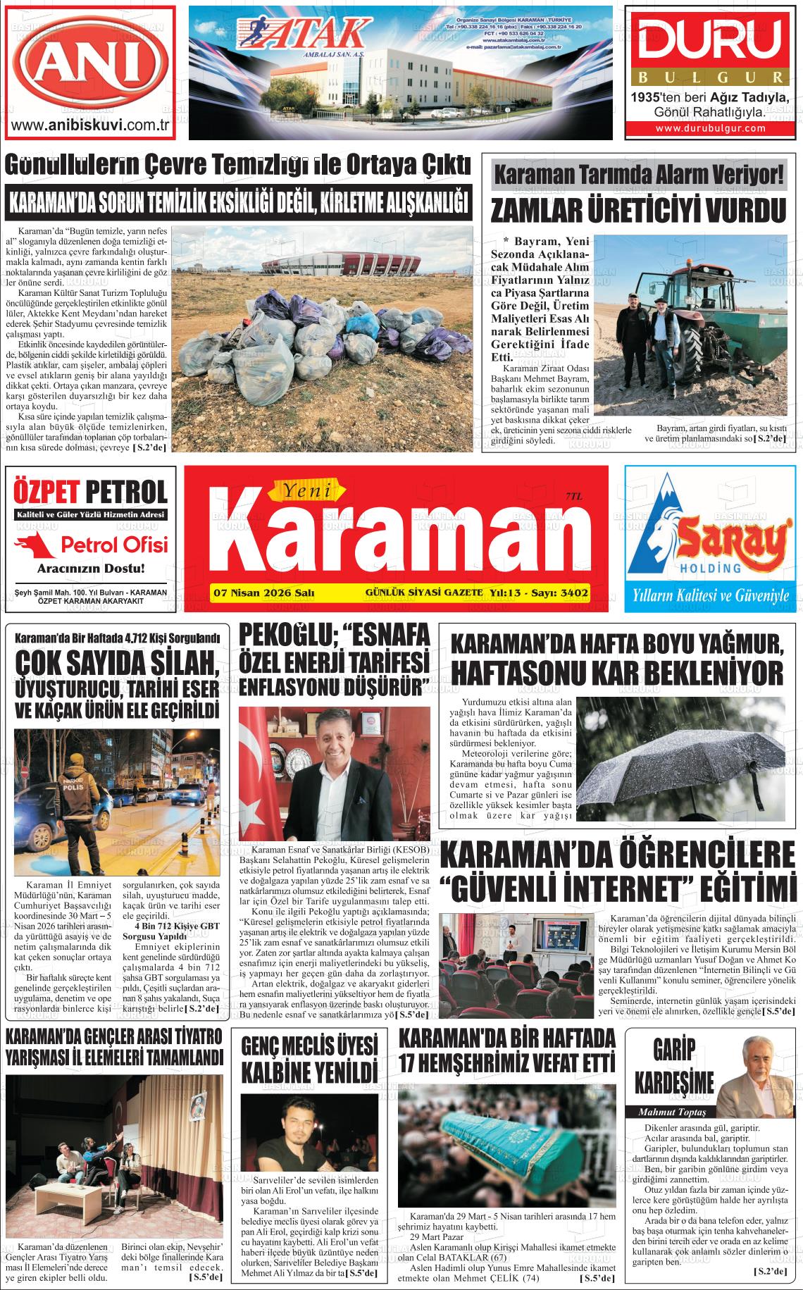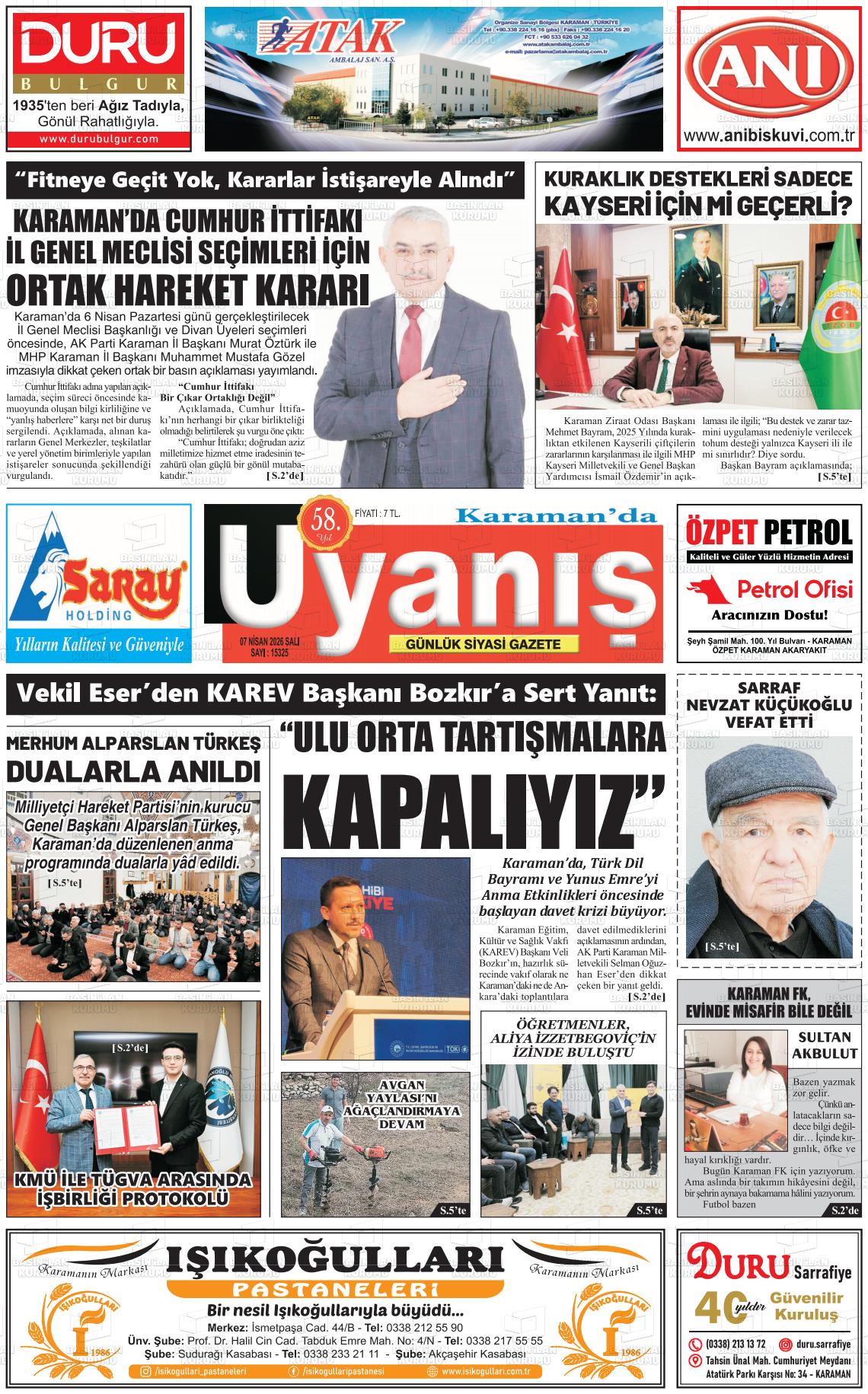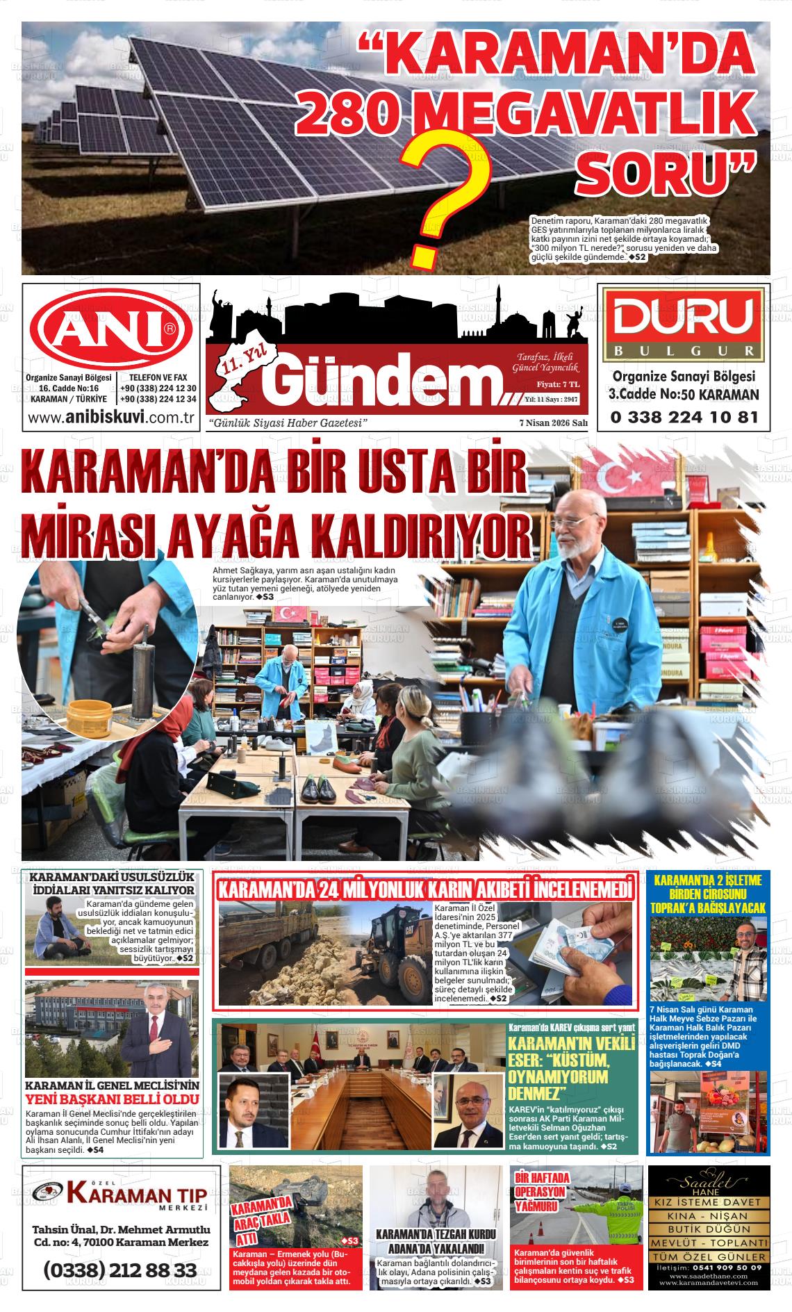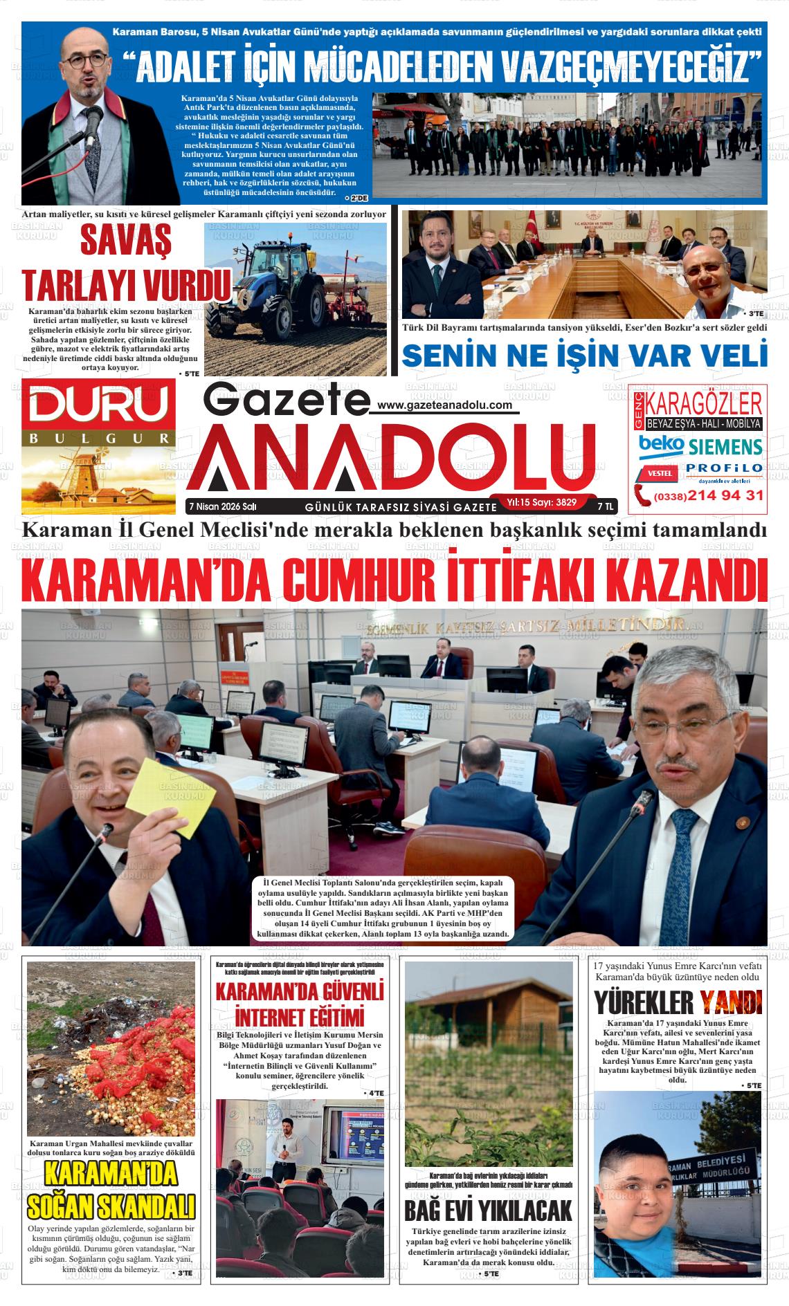 07 Nisan 2026, Salı Günü Manşeti