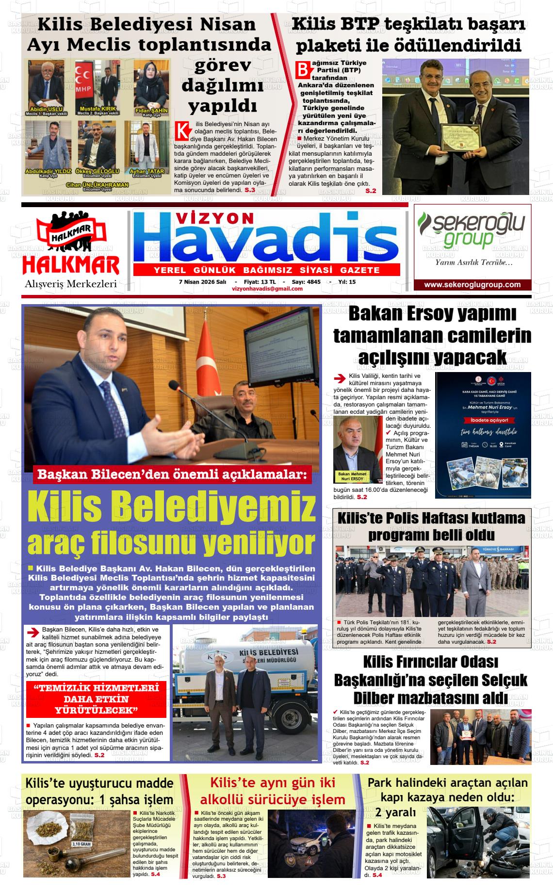 07 Nisan 2026, Salı Günü Manşeti