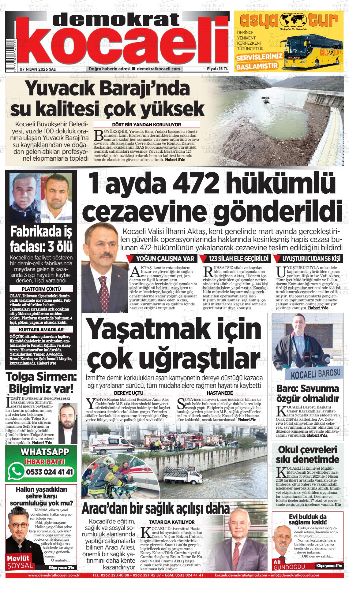 Kocaelİ Yerel Gazeteleri 07 Nisan 2026, Salı Günü Manşeti