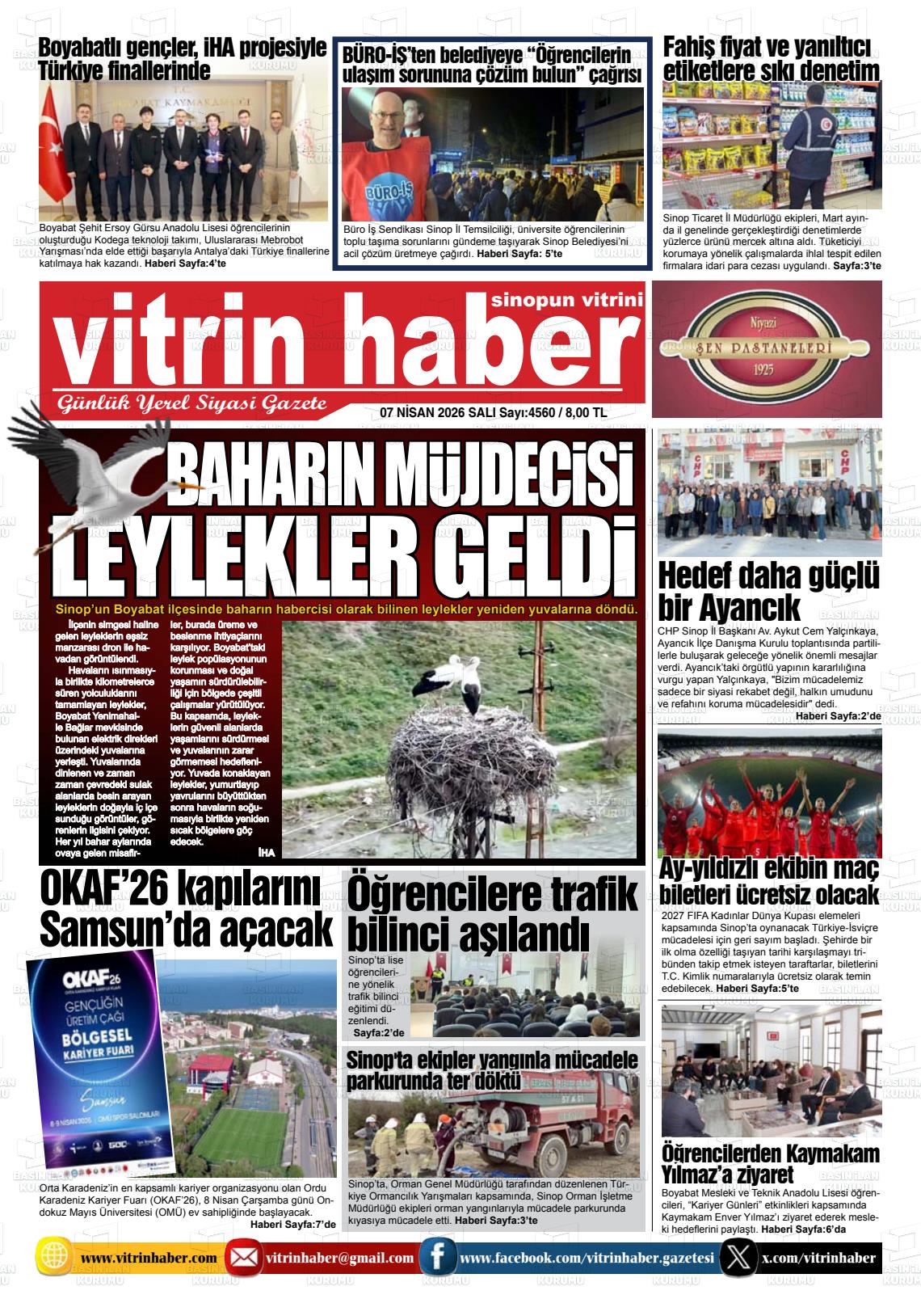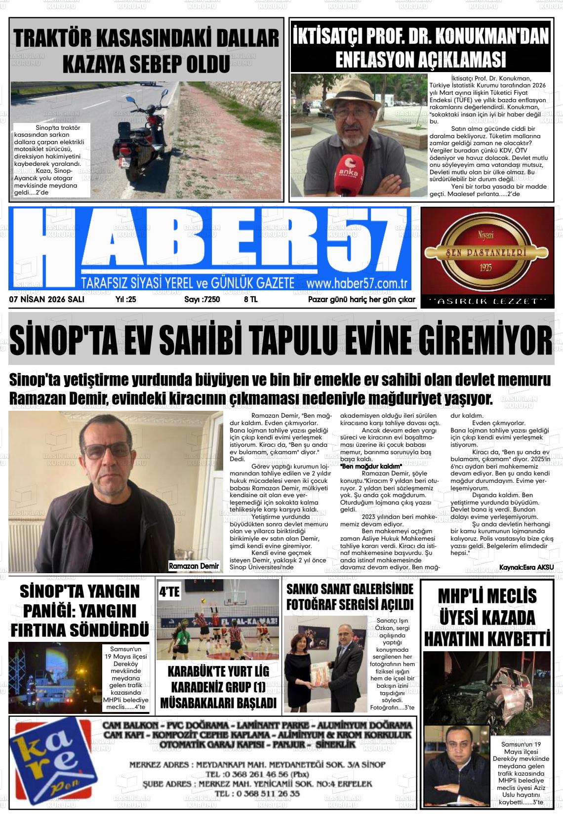 Sİnop Yerel Gazeteleri 07 Nisan 2026, Salı Günü Manşeti