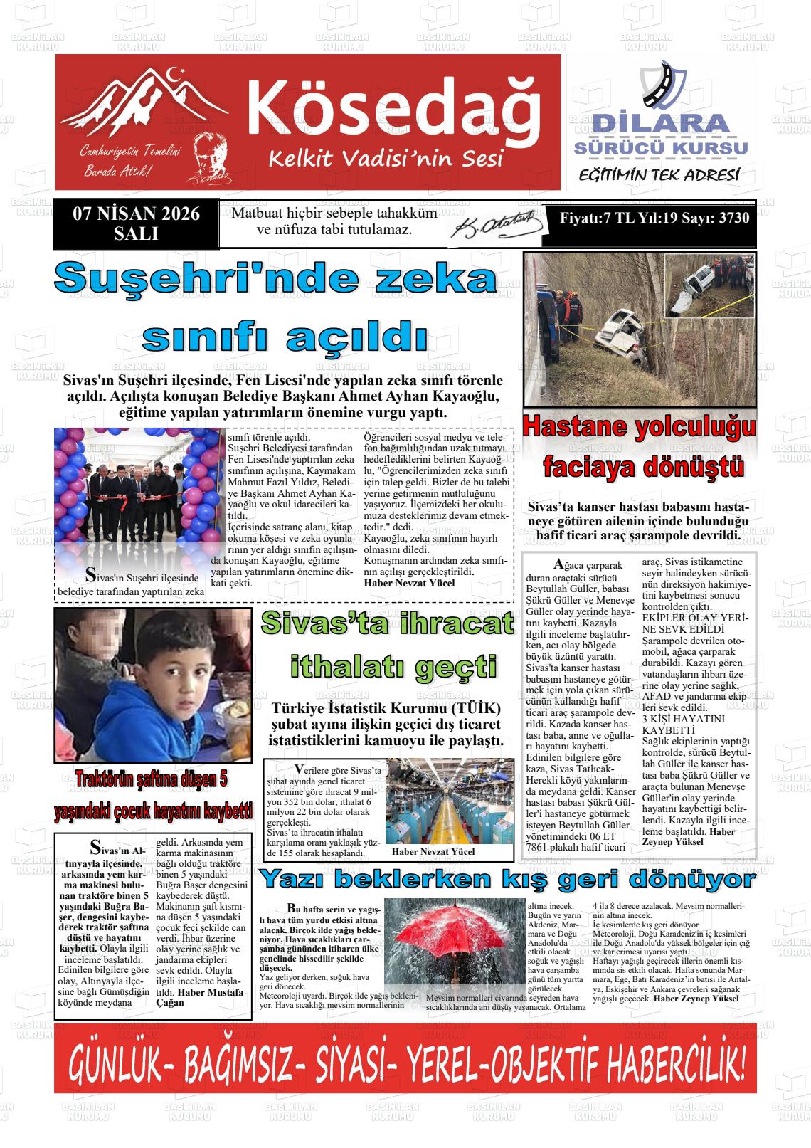 07 Nisan 2026, Salı Günü Manşeti