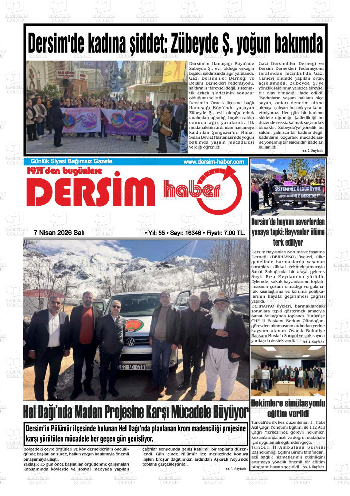 Tuncelİ Yerel Gazeteleri 07 Nisan 2026, Salı Günü Manşeti