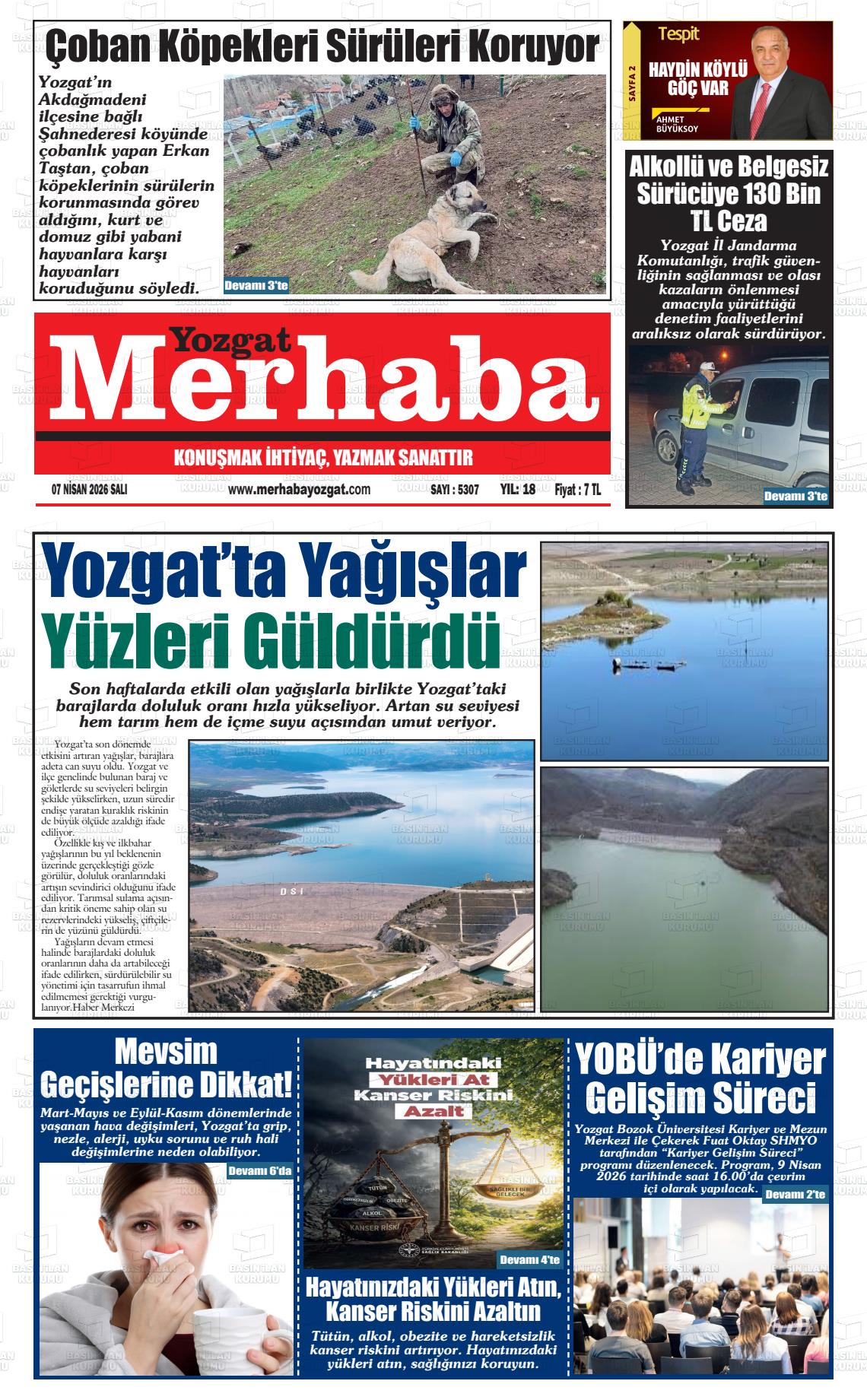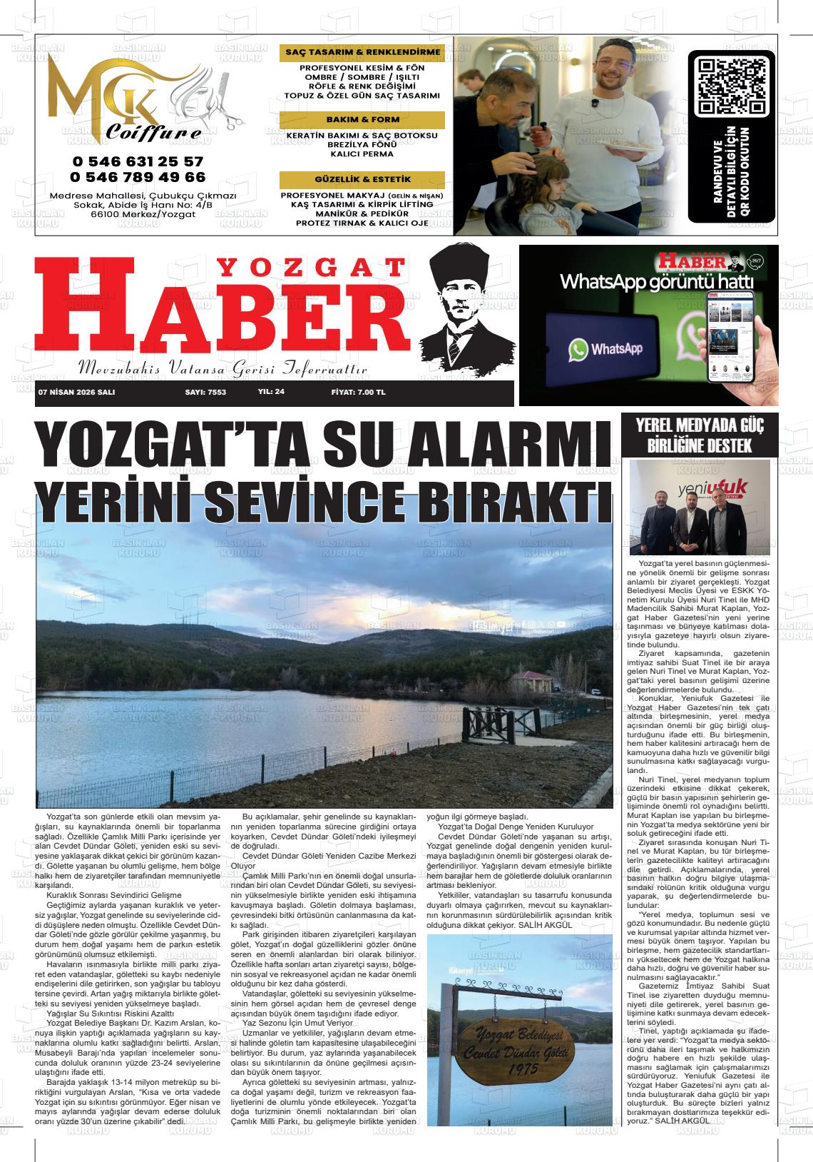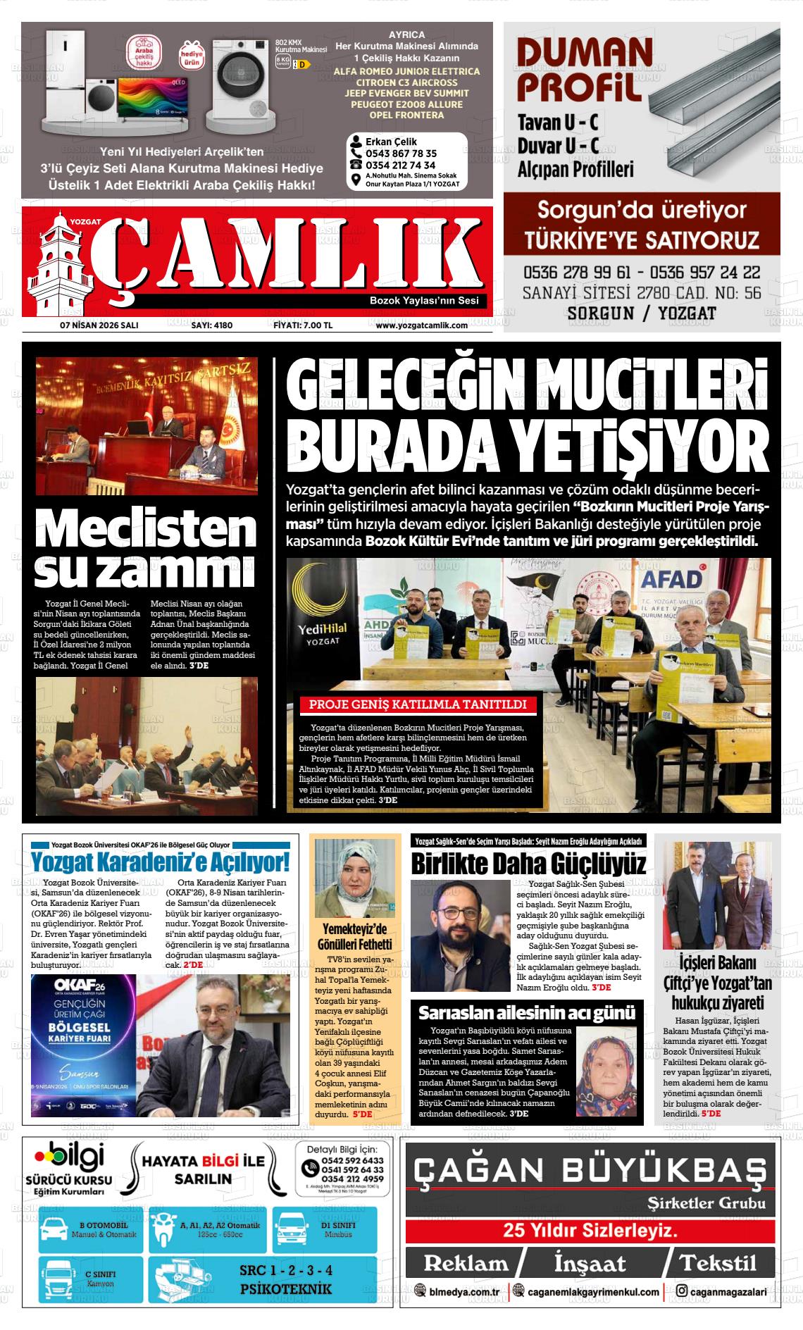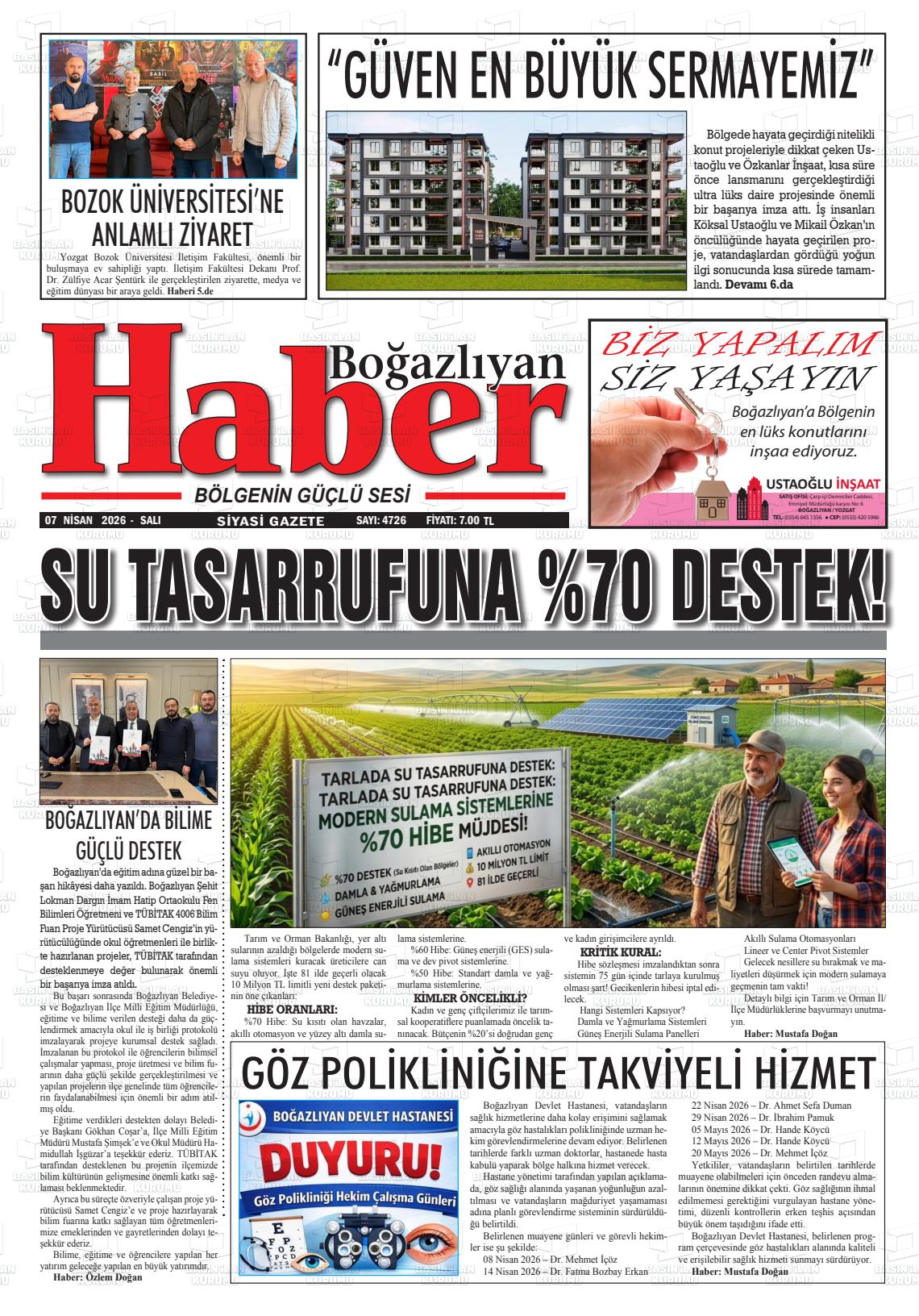 Yozgat Yerel Gazeteleri 07 Nisan 2026, Salı Günü Manşeti